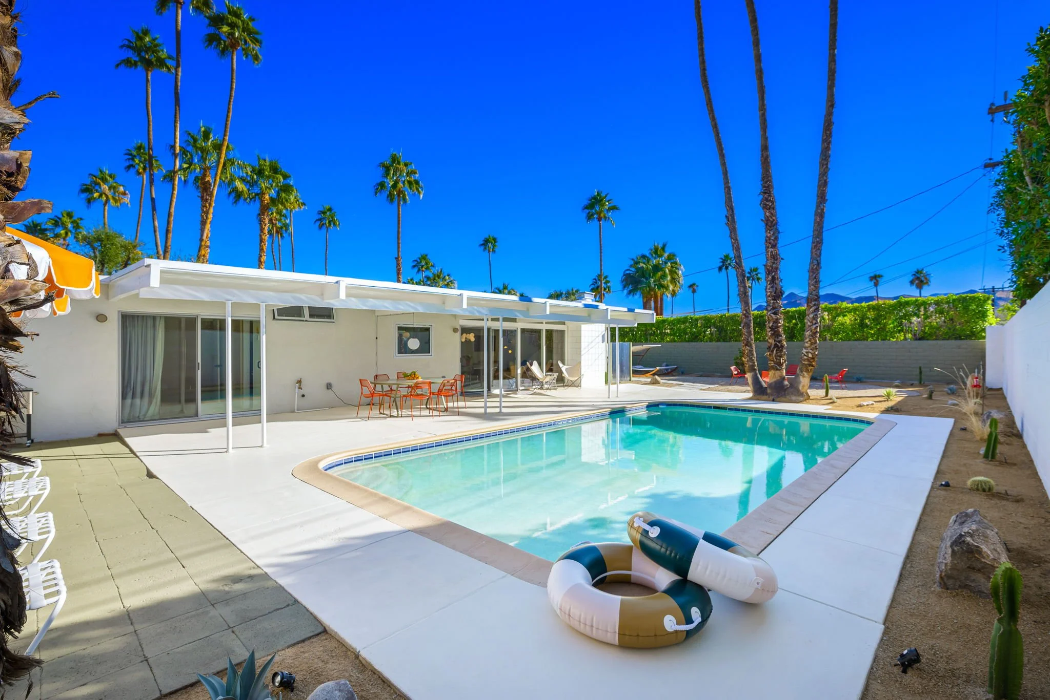 The spacious living area boasts clean lines, iconic furnishings, and walls of glass that open up to your own private outdoor paradise. Enjoy lounging by the pool, soaking in the spa, or dining al fresco in the thoughtfully designed outdoor entertaining space.